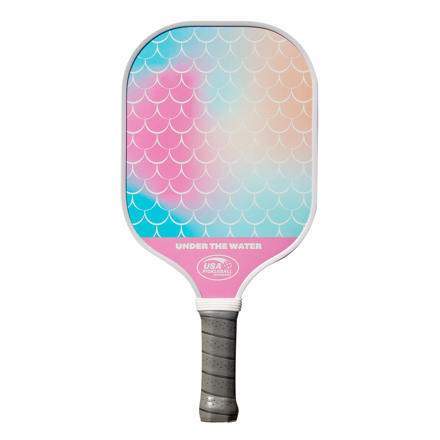Dive into the ultimate pickleball adventure with Under The Water. This single paddle features a mermaid pattern in sea-themed colors, promising to make a splash on the court like never before. Crafted with a durable honeycomb core and fiberglass surface materials, this rectangular paddle with its rounded corners isn't just stylish; it's a powerhouse of durability, ensuring an engaging and energetic gameplay experience every time you step onto the court.